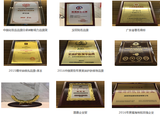 經(jīng)過多年的不懈努力,公司在我國(guó)護(hù)膚品市場(chǎng)上建立了一定知名度和影響力,獲得了較好的市場(chǎng)美譽(yù),旗下“伊貝詩”品牌2015年榮獲廣東省著名商標(biāo)評(píng)審委員會(huì)頒發(fā)的“廣東省著名商標(biāo)”、2019年獲得了深圳知名品牌評(píng)價(jià)委員會(huì)頒發(fā)的“深圳知名品牌”等榮譽(yù),旗下“果本”品牌2020年獲得了國(guó)家知識(shí)產(chǎn)權(quán)局“馳名商標(biāo)”保護(hù)、榮獲了深圳知名品牌評(píng)價(jià)委員會(huì)頒發(fā)的“深圳知名品牌”等榮譽(yù)。歷年來旗下各品牌更是獲得行業(yè)獎(jiǎng)項(xiàng)若干: